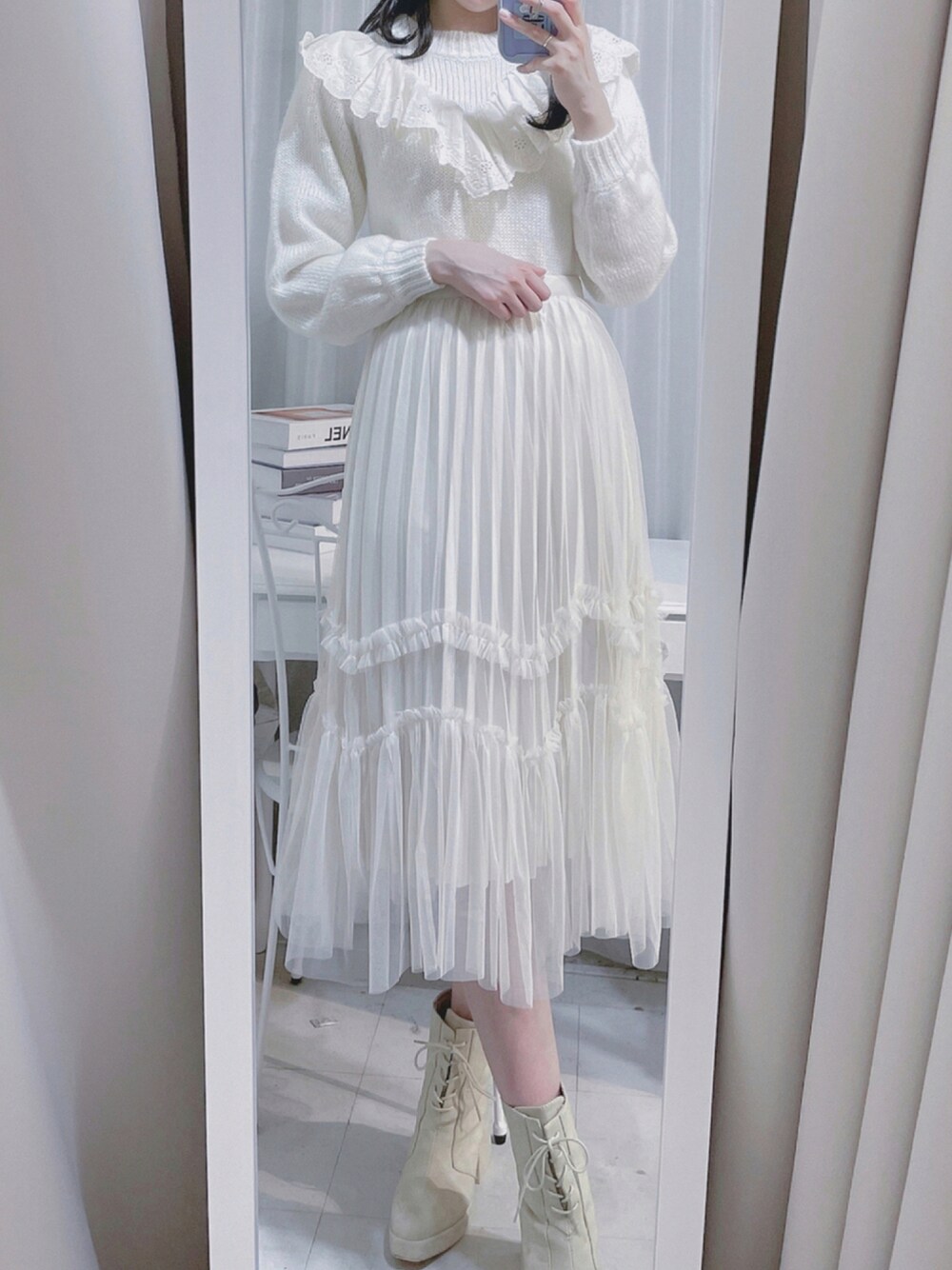 組み合わせたらめちゃめちゃ可愛かったオールホワイトコーデ🤍 ふわふわ冬の女の子って感じが可愛い☁️