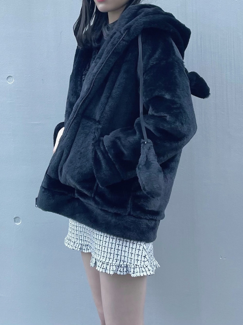 poyoさんセレクトアイテム💌 ガーリーさんの心をくすぐる うさ耳付きのフェイクファーコート🐰 ぴょこぴょこ動いてとっても可愛い🎀 かぶった後ろ姿は2枚目へ💕