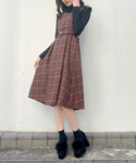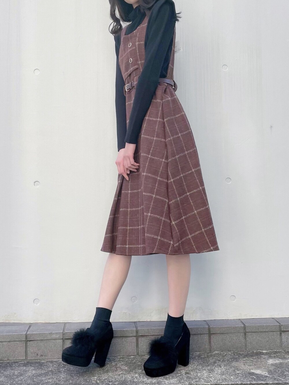 大人ガーリーなブラウンチェックのジャンスカ🍂 膝が隠れるくらいのちょうどいいミディ丈が嬉しい♡