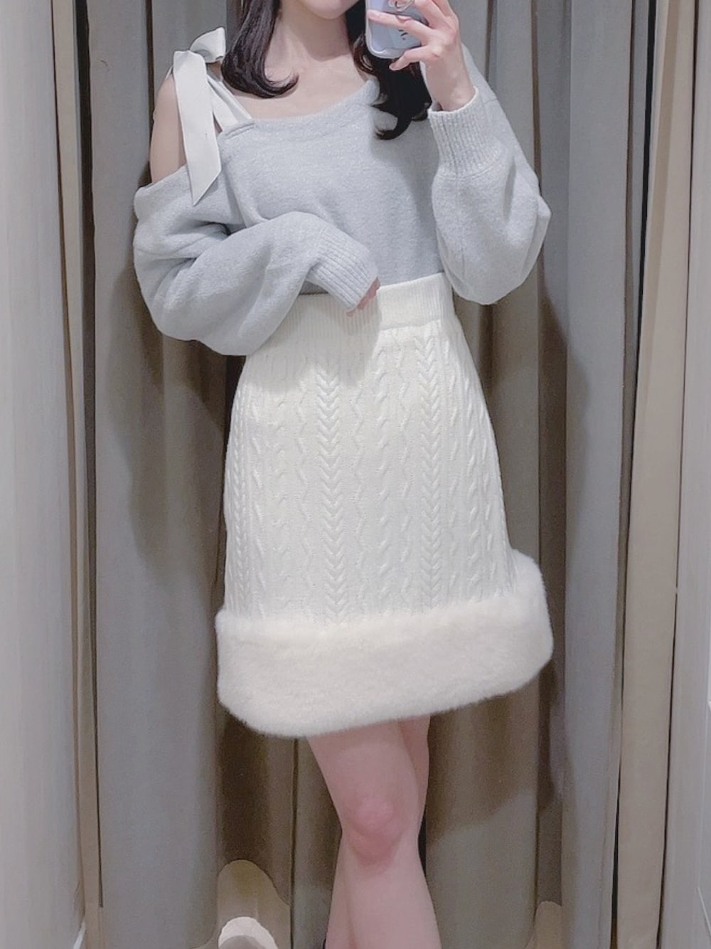 momo☁️のニット/セーター「ワンショルメローリボンニット」を使ったコーディネート
