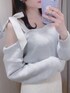 肩上で結んだサテンのリボンが可愛い ワンショルのニット🤍 ほどよい肌見せとゆる感があざとさのあるコーデに🥺