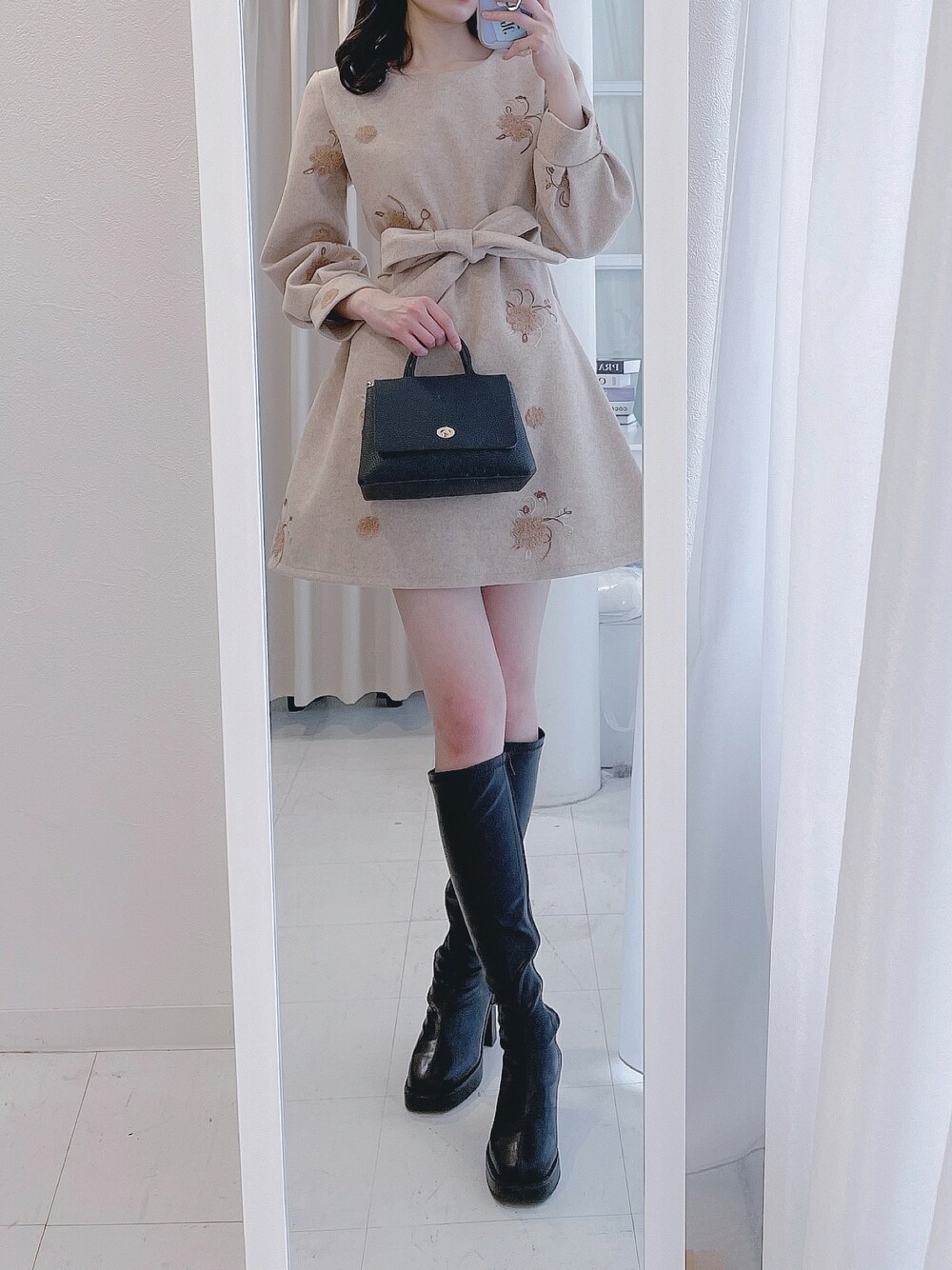 poyoさんセレクトのミニワンピ💐 落ち着いたカラーにお花の刺繍が 上品で高見えする1枚🤍