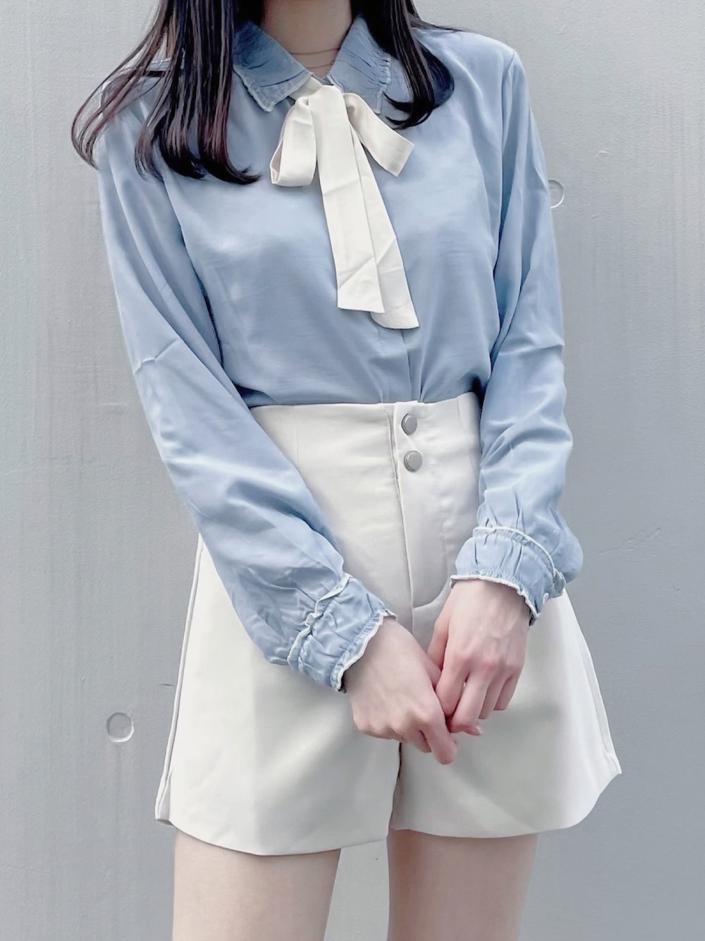 ZOZOTOWN 明日までタイムセール🦕🤍 ブルー×アイボリーの好きな組み合わせ🥺 クシュっとした襟とカフスが他にはない可愛さ♡ ショーパンはシンプルかつすっきりとしたシルエットで 着回しにも大活躍✨