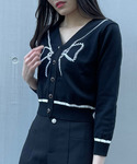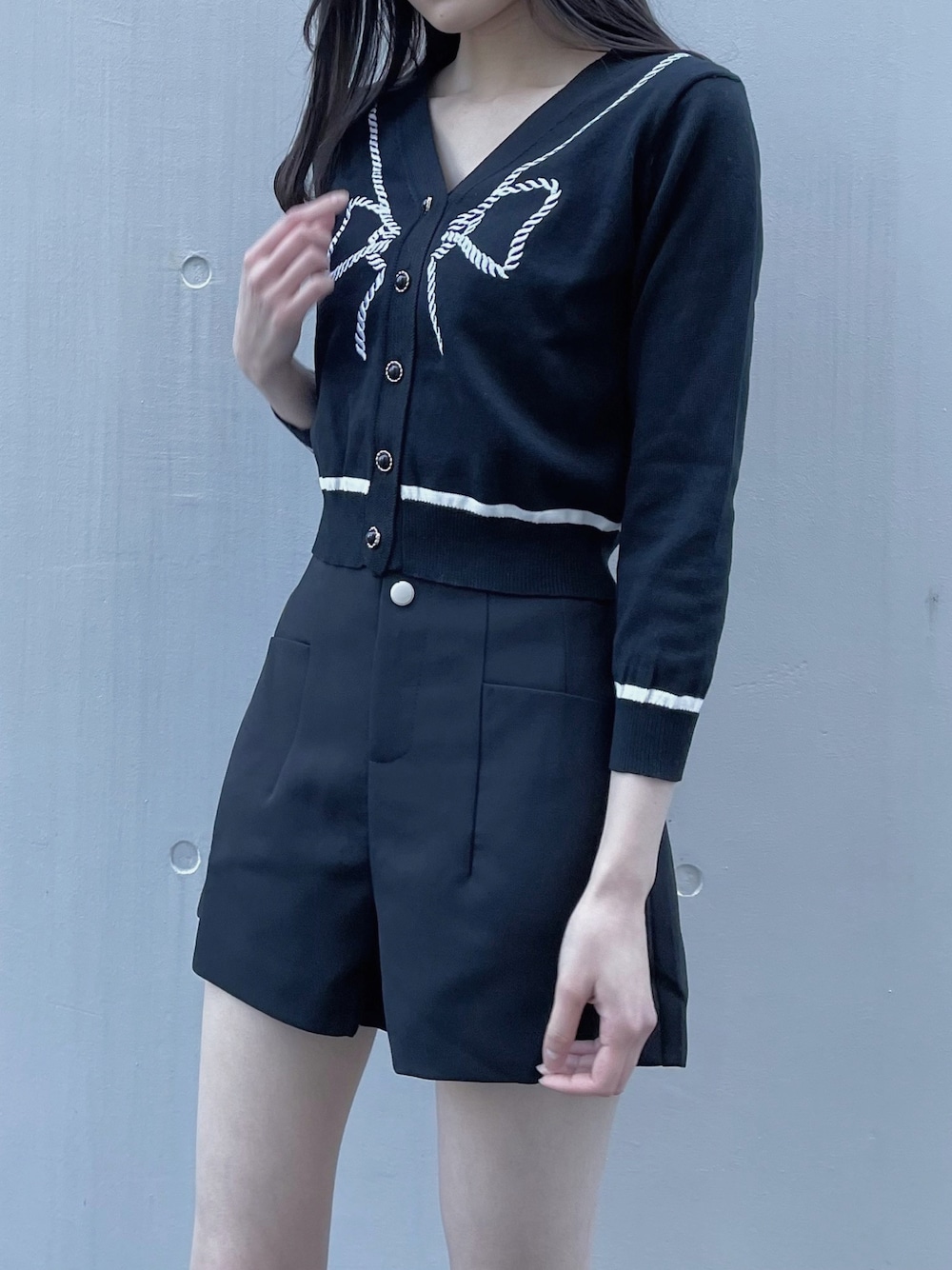 オールブラックコーデ🥷 リボンモチーフが他にはないデザインのニット バイカラーでまとめているので派手になりすぎずに個性を出せる1枚🖤