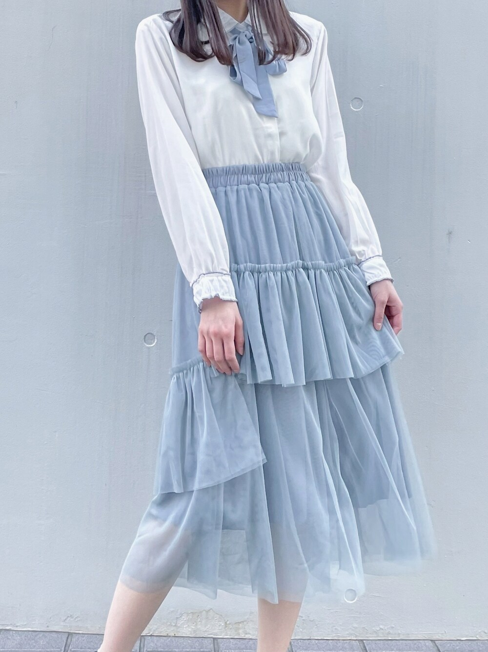 ZOZOTOWN TimeSale🤍 大好きな淡いブルーでワントーンコーデ🐋💍 ふわふわティアードチュールが春らしい🛁