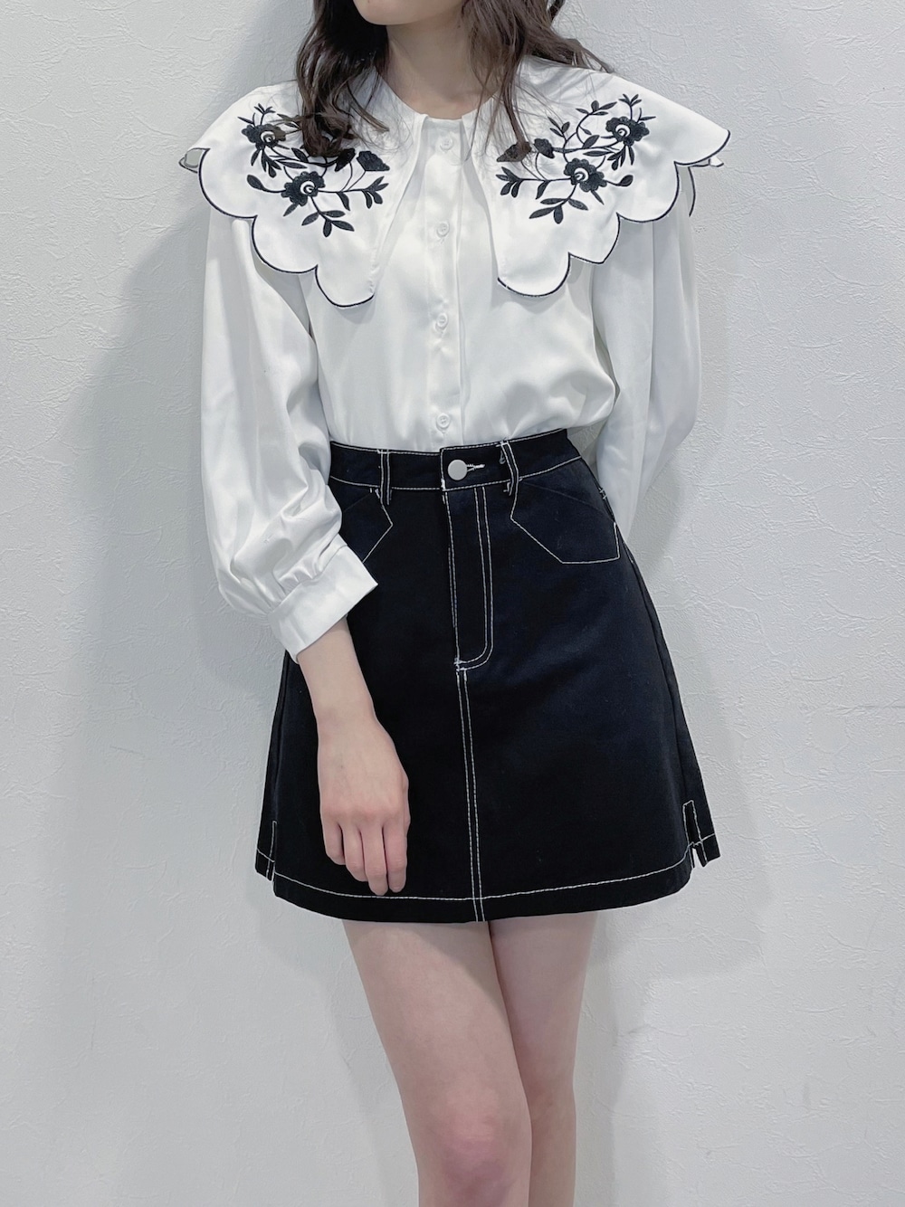 女の子なモノトーンコーデ🌷 お花の刺繍があしらわれたビッグカラーが可愛らしい😚♡