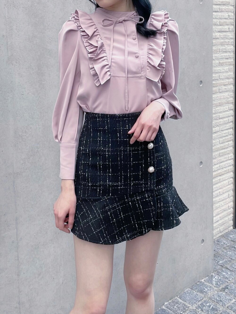 poyoさんプロデュースのブラウス💞🎀 ハイネックで留めた前ボタンに たっぷりダブルフリルが上品でありつつも可愛い🍓
