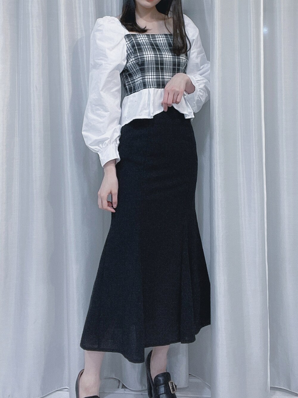 momo☁️のスカート「【titty&Co. PETIT】チェックタブマーメイドスカート」を使ったコーディネート