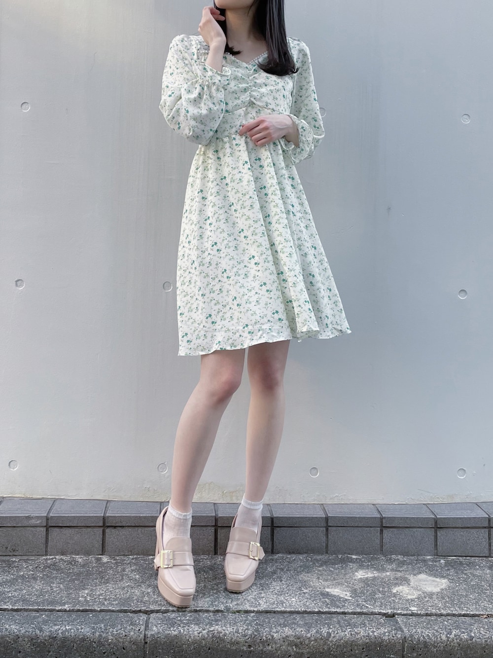 ZOZOTOWN timesale 🌼 ふんわり春らしい花柄ワンピース👗🤍 デコルテを縁取ったパールがさりげなく華やかな印象に