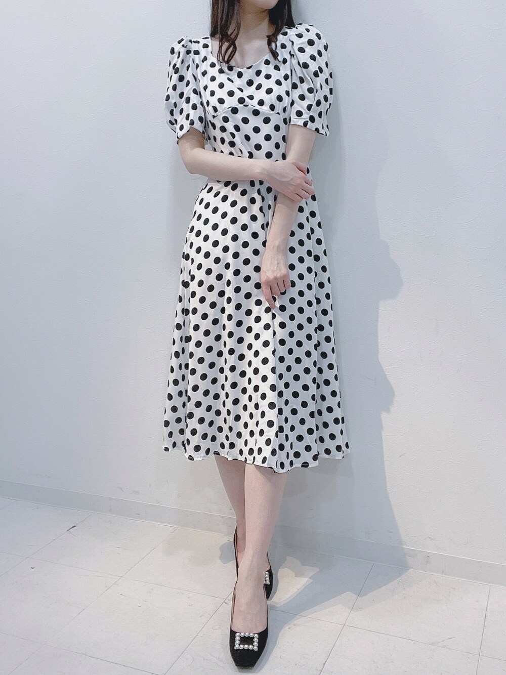 momo☁️のワンピース「【titty&Co.PETIT】バックリボンドットミディワンピース」を使ったコーディネート