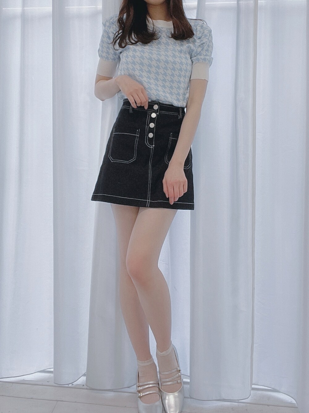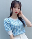 ZOZOTOWN TIMESALE💙 プチプラが嬉しいカジュアルガーリーコーデ🥳 ブルーの千鳥柄が珍しいニットは 合わせるだけでグッとお洒落な印象に💫