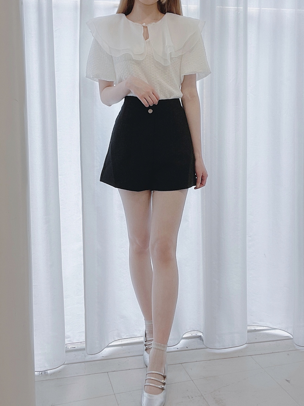 ふわっとダブルカラーに大きなパフスリーブが大人可愛い🤍 ボトムはミニでもロングでも🙆♀️♡