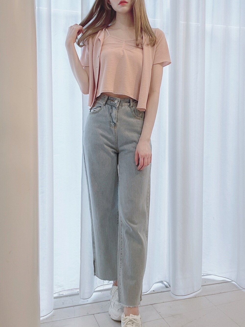 韓国っぽパンツコーデ👖💞👟 お腹チラ見えなキャミとボレロのセットもツボ😚🍑