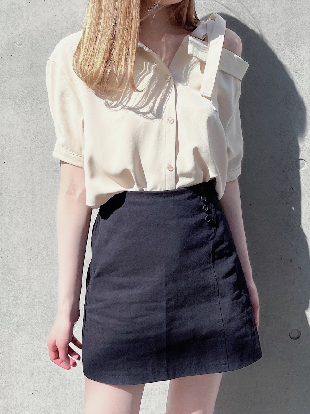 ZOZOTOWN timesale 💭 シンプルな韓国風コーデ🫶 さりげないワンショルデザインのシャツがポイント