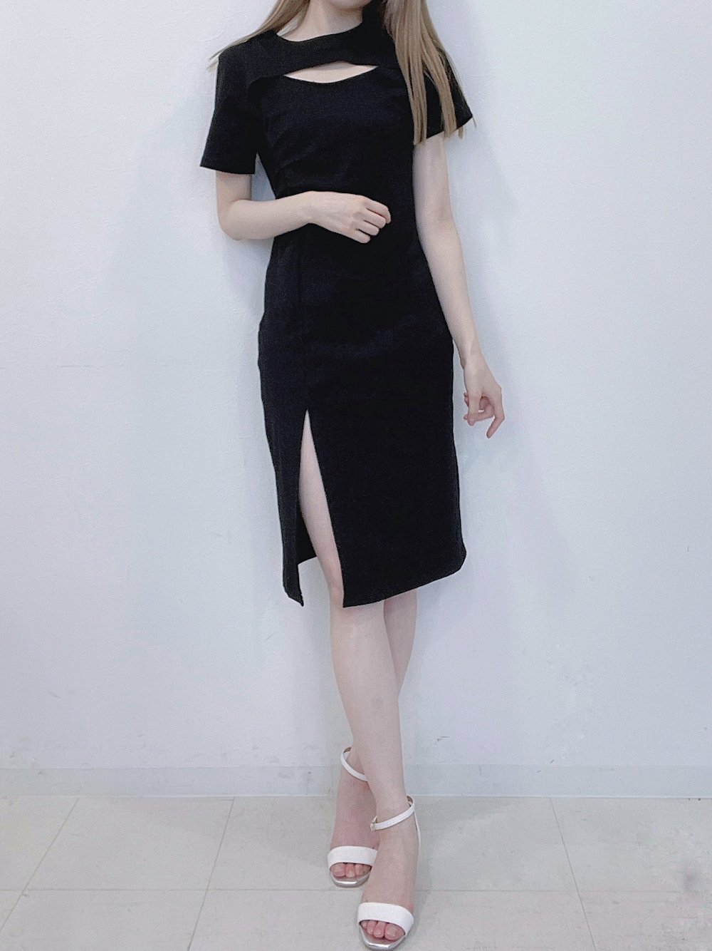 程良い肌見せが大人可愛いブラックワンピ🖤