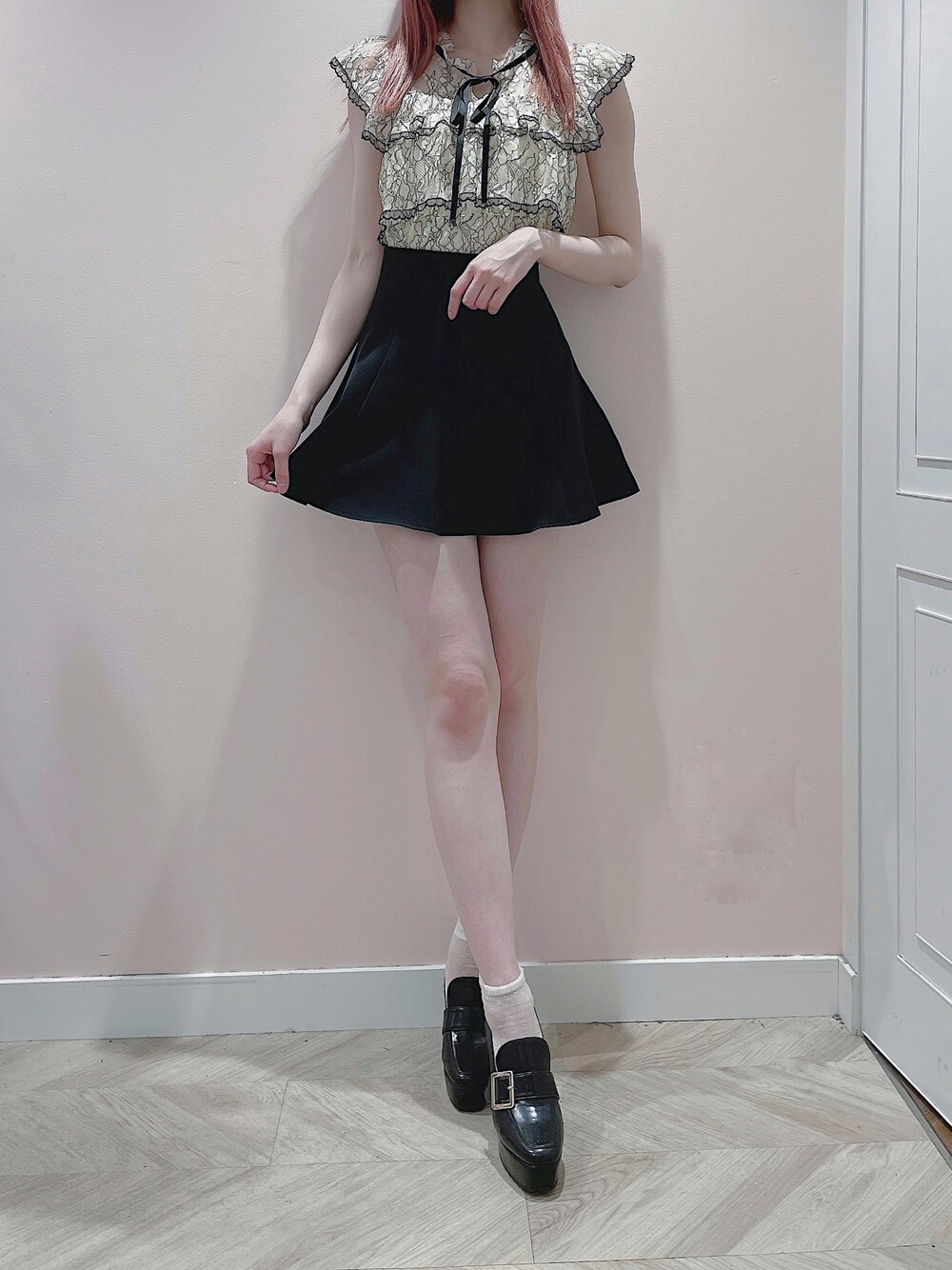 ブラックで縁取ったレースが上品可愛いコーデ🖤 ハイウエストのスカパンが抜群にスタイル良く見せてくれます🤫✨