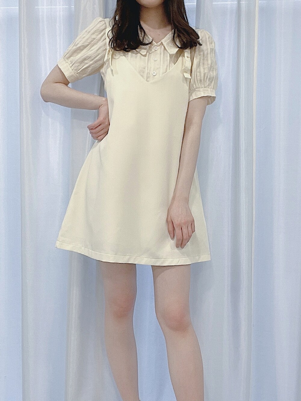 ZOZOTOWN タイムセール中🐣 肩のリボンが可愛いミニジャンスカ💕 アイボリーカラーでまとめるとお洒落な印象に✨