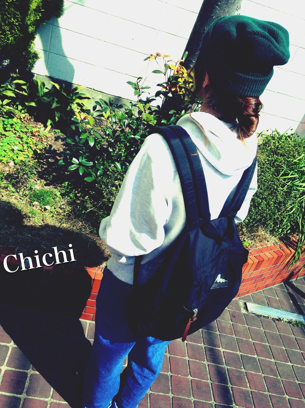 パーカー Champion ズボン 古着 スニーカー コンバース 時計 G-SHOCK リュック GREGORY 早くお花見行きたいーっ。