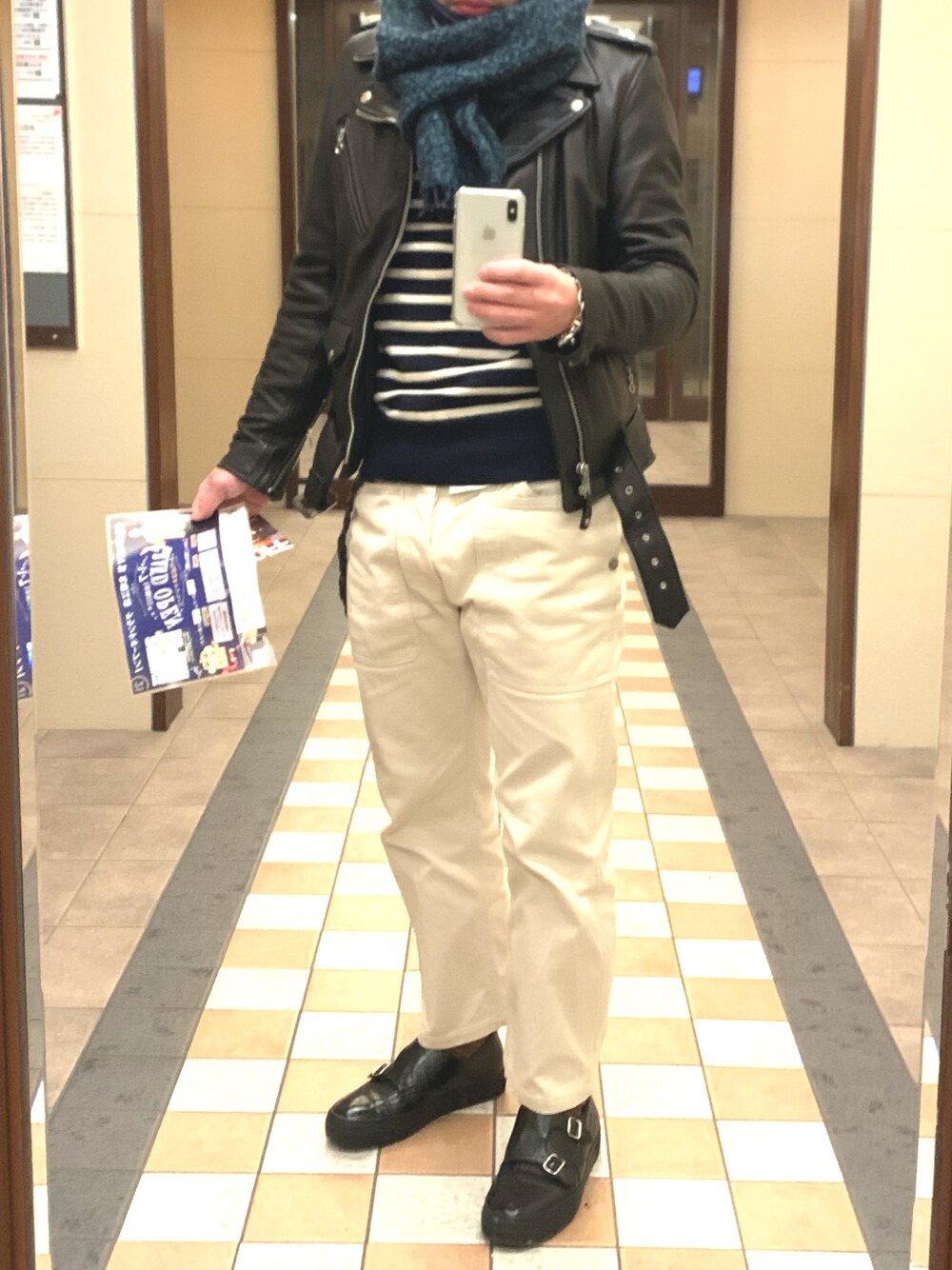 今年買ったものってヘビロテになる。 そんなベタベタのAラインコーデ。 ライダースってハードになりすぎる。 なりすぎたくないからワイドパンツで外します。 それぐらい中和してライダースを羽織るのがちょうどいいんです。 結果、そんなコーディネートが好きなんです。 ライダースを今年買ったので出現率高めです。ポケモンのコラッタより出現率高いかもしれない。それは置いといて。 実はマフラーもお気に入り。 小物でグリーンのアイテムがあったらアクセントで使いやすいし、雰囲気も出るよね。トレンドカラーのボッテガグリーンは発色強すぎてなかなか使いにくいけど、これぐらいトーンを落とすとむしろ品のある大人の印象に仕上がりますよね。ちょっと恥ずかしいのは少しもっこりしているところ。発言には品のかけらもございません。 中のニットは、フィールズダルボー。フランスのブランドでメイドインフランスにこだわったブランドです。最近まで全然知らなかったけど、雰囲気は、セントジェームズとかルミノアとかそんな雰囲気だけどどこかアクセントを加えた遊び心あるブランド。少しポイントに遊びを入れるのがお好きな方はベーシックなブランドよりもこのブランドがいいかもしれない。 以上、長々とご静聴ありがとうございました。 p.s.はじめて標準語使いました。