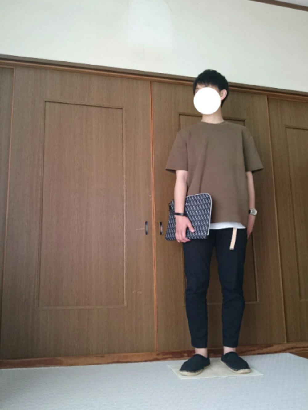 UNIQLOUのミラノリブクルーネックセーターを着てみました。 Lサイズを着用し、細身の黒イージーパンツを履くことで上下でメリハリをつけています。 シンプルな服装が多いため、レザーのロングベルトが欠かせません(>_<) 総柄のクラッチバッグもアクセントに。