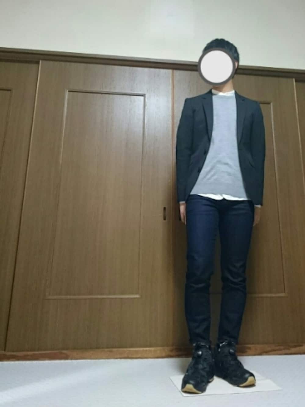 sho.のデニムパンツ「MEN ストレッチスキニーフィットカラージーンズ」を使ったコーディネート