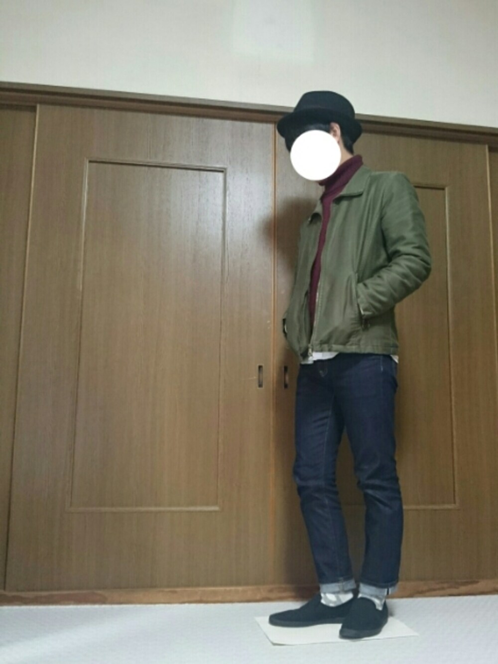 こんにちは🙋 タートルネックニット×シャツにブルゾンを羽織りました。 ボルドー、カーキと色を使ったので、ハットと靴を黒でまとめました(^o^) 今日は雨模様ですが、気温は比較的暖かく過ごしやすそうです(^^ゞ