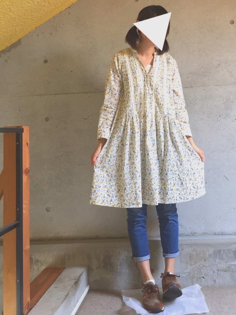 可愛すぎて買ってしまったワンピース✨ ワンピース 古着 1300円 デニムパンツ 古着 500円 今日は夏ぐらい暑いけど 春っぽく🌼