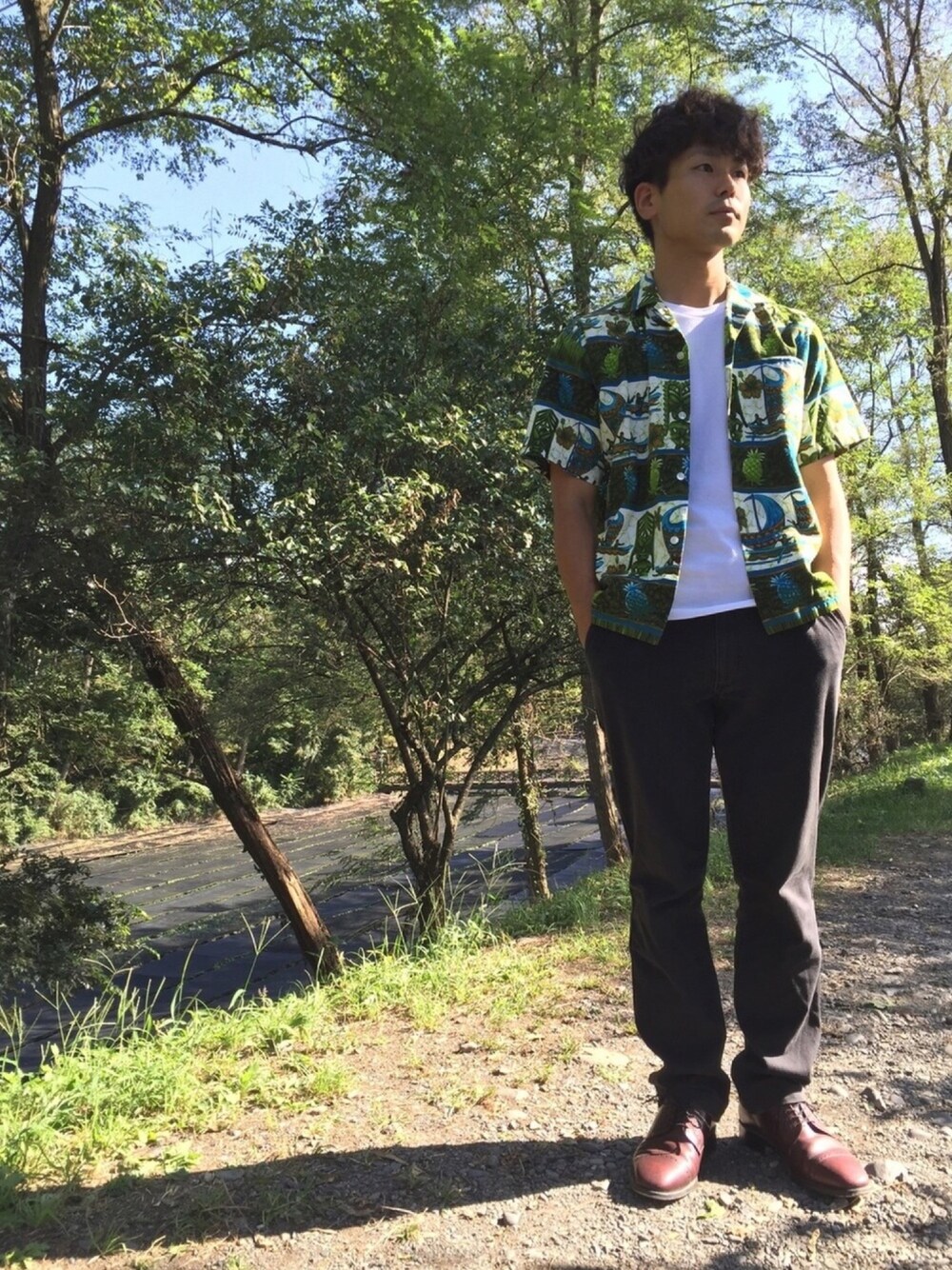 アロハシャツだけどカジュアルになり過ぎないように革靴を合わせました👞