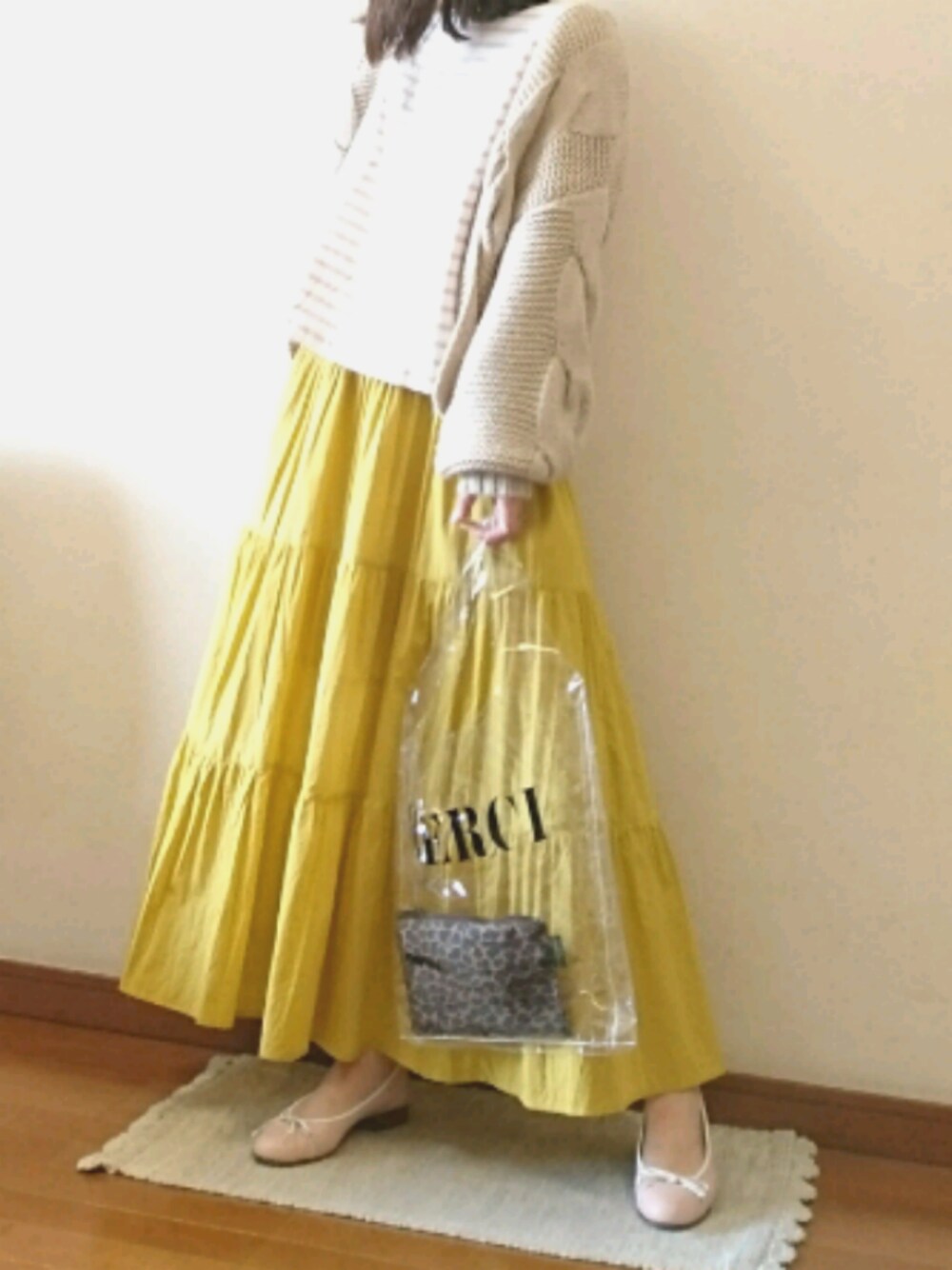 ミモザ色のスカート🌻 GU新作ティアードフレアロングスカート 可愛すぎ。コスパ良すぎ。 スキャンくじ、何度チャレンジしても 当選するのは100円OFFクーポンばっかり…😳