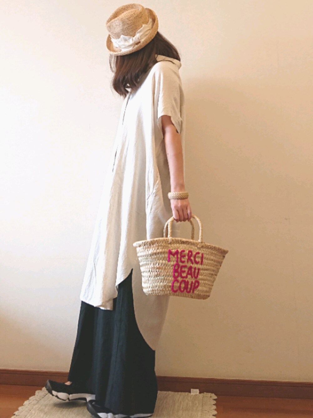 a.y.aのシャツワンピース「ルーズでもキレイをつくる、長めのゆるめ。麻混シャツワンピース」を使ったコーディネート