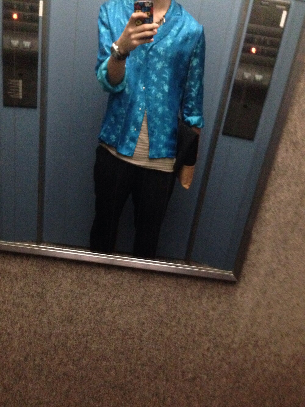 個人的に注目しているチャイナシャツを使ったコーデ。 とても斬新。かなり攻めてます。 でもコレ。通気性皆無だから暑い。。。