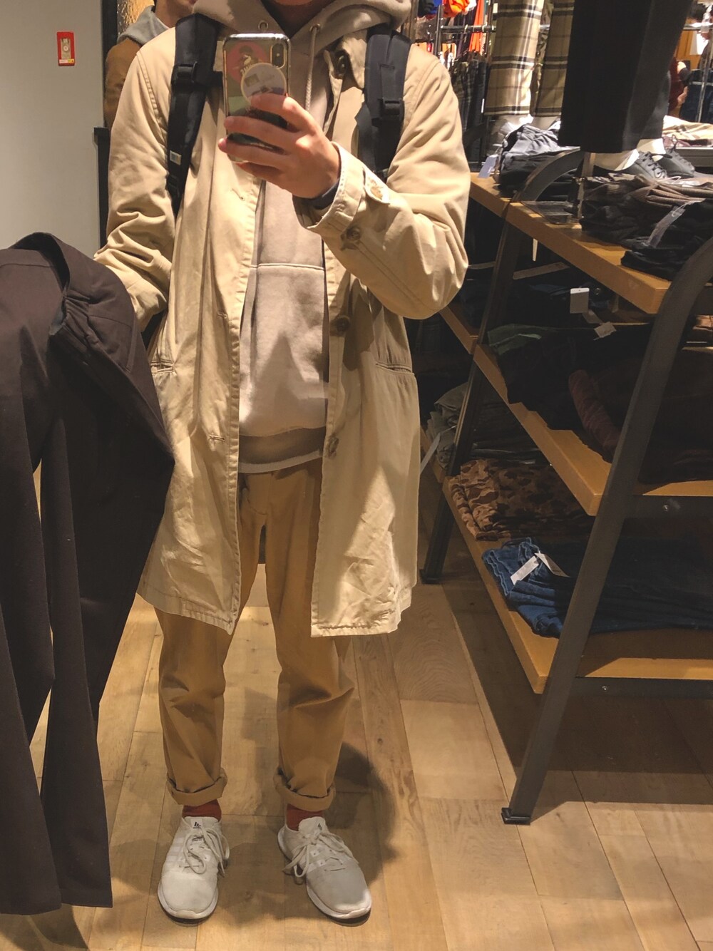 同系色でまとめたコーディネート 靴は白のadidasのランニングシューズで外しを狙って、、、
