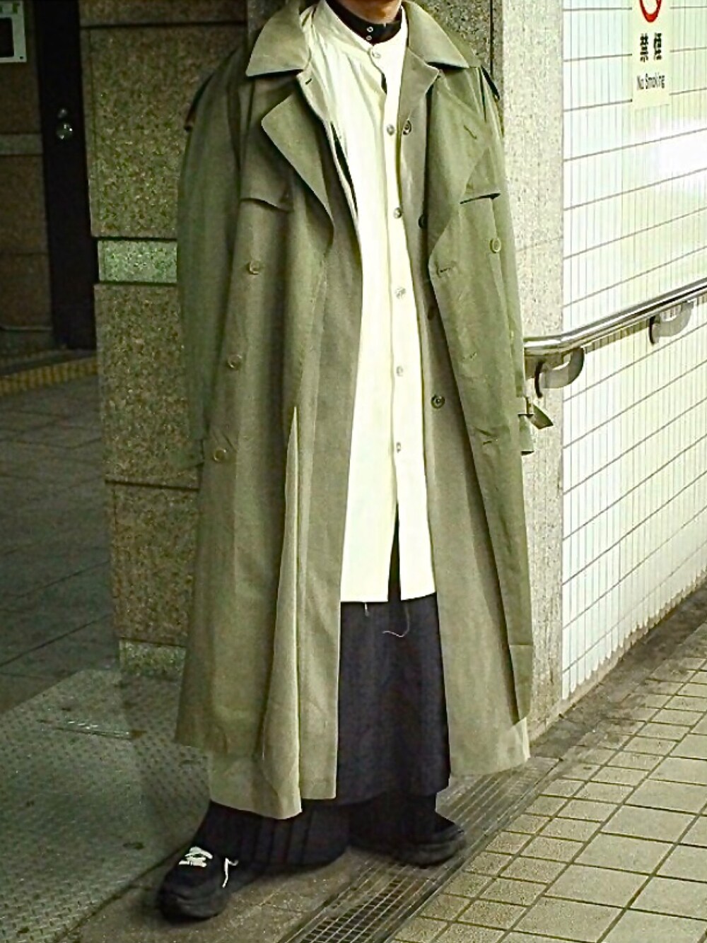 おはようございます☀ 目に止めて頂き感謝です😌 古着の鬼レイヤードコーデ。 黒のロングワンピースに 白のロングシャツ、 カーキのシャツコートの上から オーバーサイズのトレンチコート着てます🤤 多分、レディースの物かと思われます が、ぼくはこういうのが一番好きです😌
