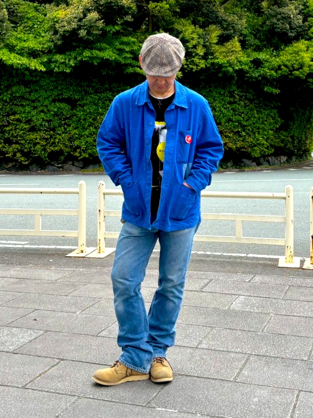 肌寒かったのでusedのフレンチワークJKTを羽織って。インナーは白サーマルにグリーンデイのバンTパンツはリーバイスの517とレッドウィングを合わせました。ハンチングはお気に入りのステットソン。 春コーデ #古着 #バンドTシャツ #ワークジャケット #リーバイス517 #レッドウィング