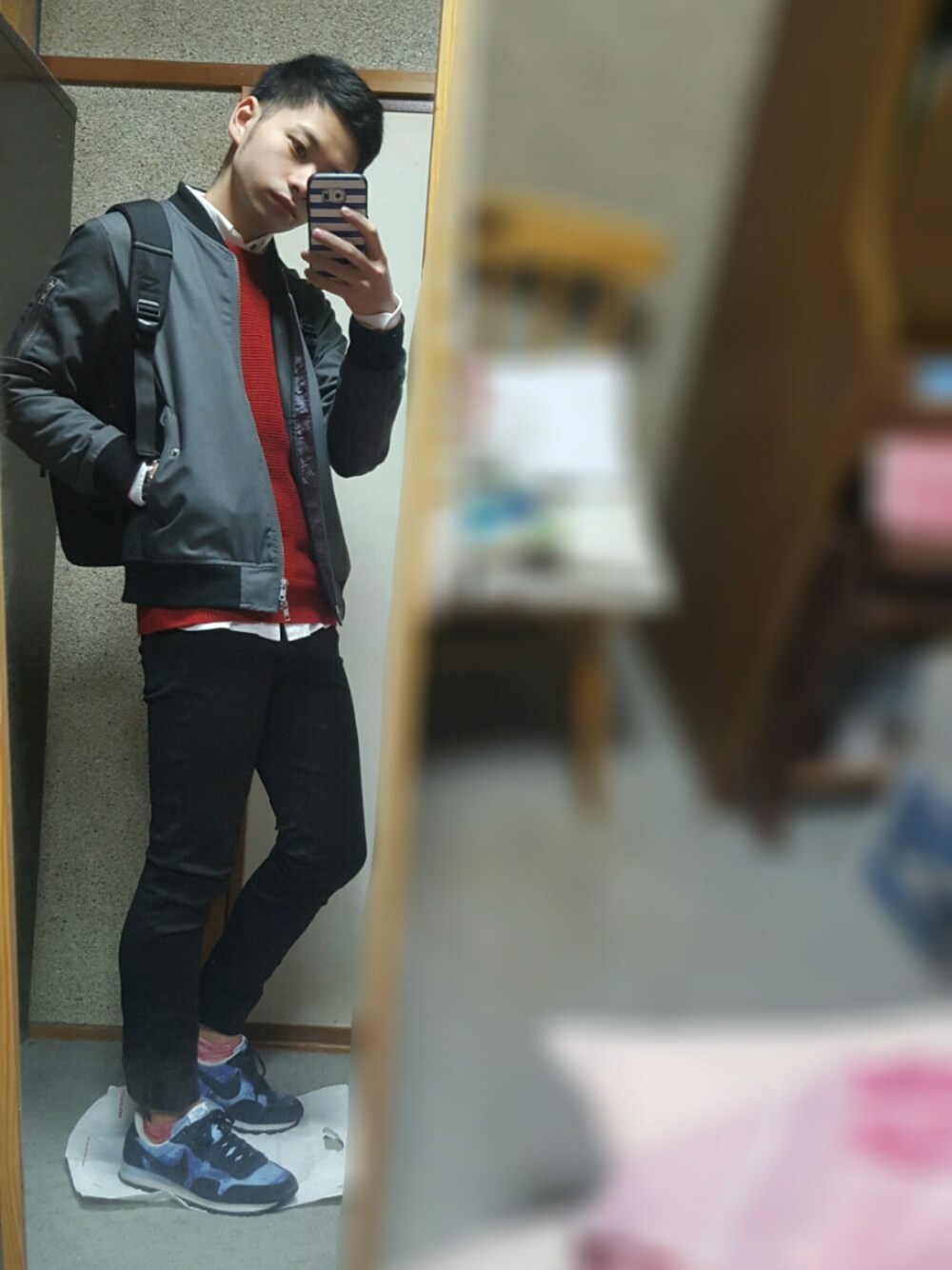覗いていただきありがとうございます(^^) 最近夜がめっちゃ寒いから厚着したのはいいものの、周りの皆さんの薄着具合にびっくりしました。笑 昼はいけても、夜は間違いなくあかんやろ!的な薄着具合ね! ってゆうても、今回の僕は厚着しすぎましたな。 赤ニット届いたので早速着てみました! 白シャツ中に着て、これ全部で四枚着込んでますよね。 ハロウィンだけに、厚着ジェイソン!!!