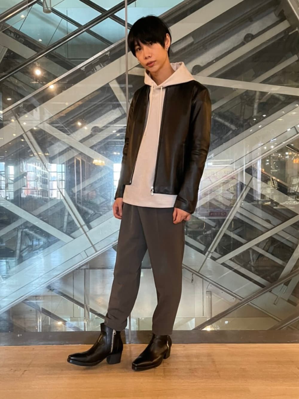 本日は、シングルレザーライダースジャケットのスタイリングです。 無駄な装飾を削ぎ落としたシンプルなデザインでどんなインナーにも合わせやすいです! 今回はプルオーバーパーカーできれい目カジュアルに仕上げました! ぜひ、店頭でチェックしてみて下さい。