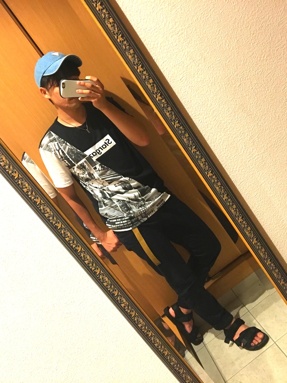 Goenji@相互フォローのキャップ「WEB限定 Guess/ゲス デニム ベースボールキャップ/6パネルキャップ」を使ったコーディネート