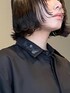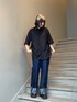 ロールアップパンツにブラックのシャツを合わせたキレイめ+カジュアルコーデ。襟の術がアクセントになり、とても着やすいシャツです!