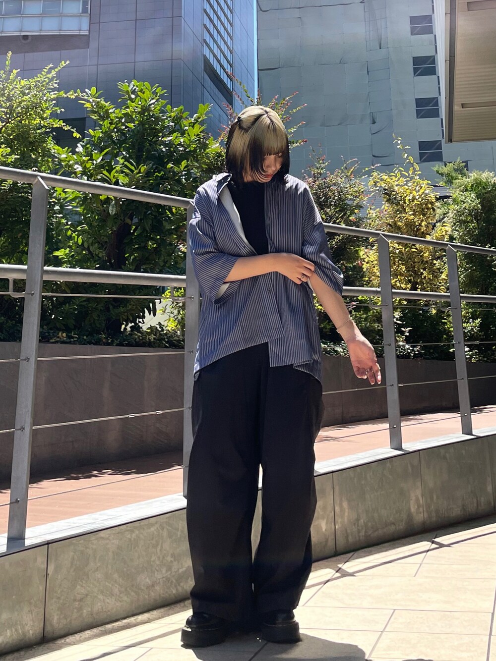 トロミ感、落ち感のあるナメラカストライプ ルーズシャツ。カジュアル、キレイめと幅広いアイテムと相性抜群なシャツです!只今SALE中でお買い得になっています。