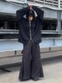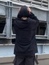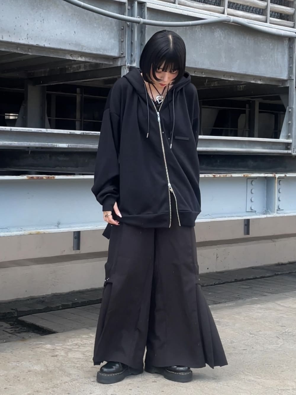 今年の注目アイテムのパーカー。 Mサイズを着用していますが、ゆったりと大きめなシルエットです。 私はモードな着こなしにしてみたかったのでオールブラックコーデにしてみました。