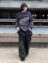 3色の色で構成されたグラデーション柄がとっても魅力的 見た目にも暖かいシャギーニット!! アクリル糸を使用しています。 一枚着でメインに、インナーとして活用、 様々な着こなしができる秋冬一押しニットです。 サイズはS(66)サイズを着用しています。
