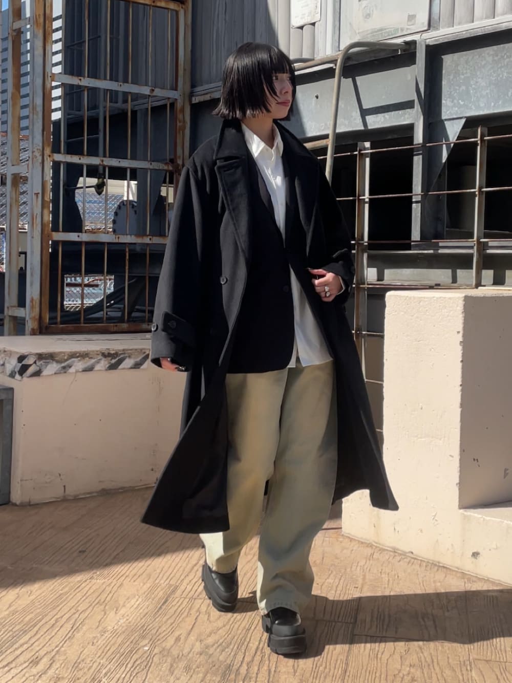 あおい(tk.TAKEO KIKUCHI)のチェスターコート「◆ダブルオーバーコート」を使ったコーディネート