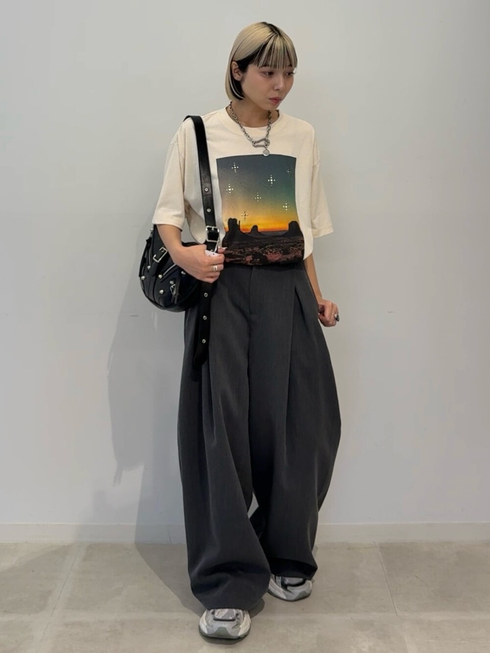 ウェスタンフォトスタッズTシャツを使ったコーデ! 吸湿性や通気性のある肌触りがいいTシャツです。 (サイズはSサイズを着用しています) スタイリングは今後入荷されるアイテムを使用しています。