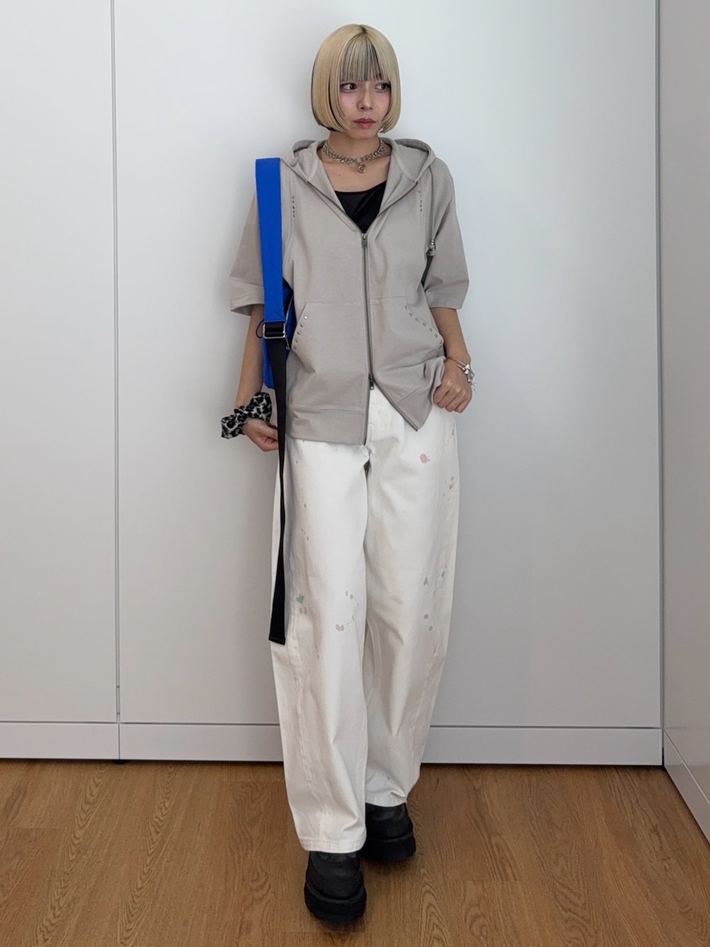 あおい(tk.TAKEO KIKUCHI)のパーカー「スタッズ ダブルZIPパーカ」を使ったコーディネート