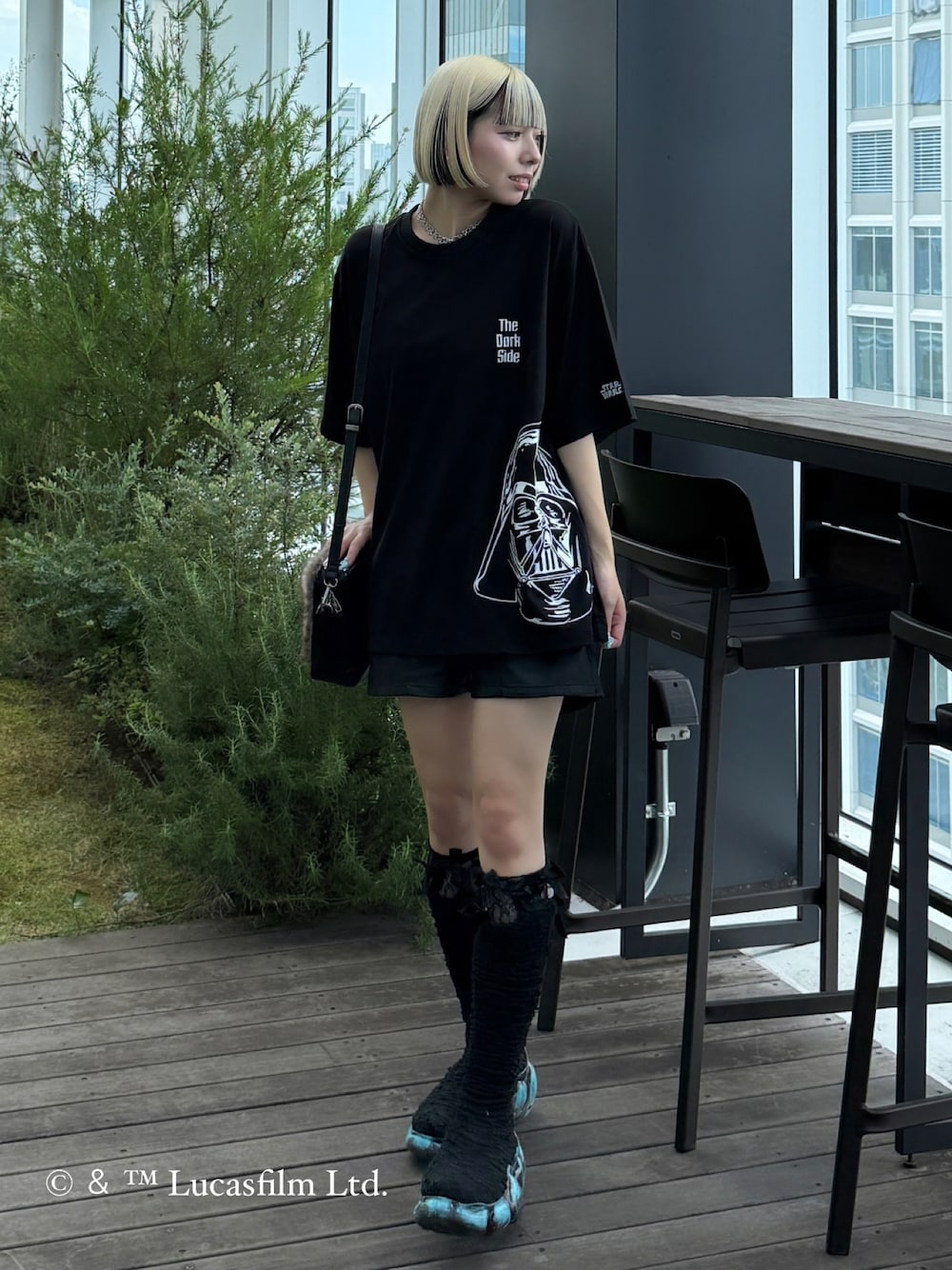 【STAR WARS】Capsule Collection ポンチTシャツ 【STAR WARS】Capsule Collection アオリミニショルダー の二つを使ったコーデ! インパクトがあっておすすめです⭐︎