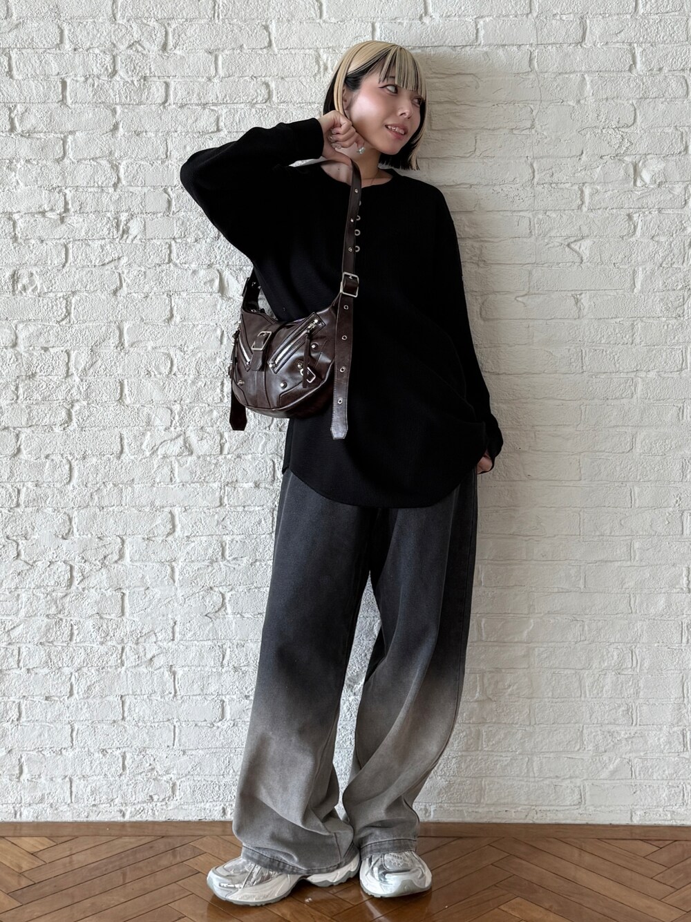 一枚で決まる、ワッフル&スムースプレートヘンリーカットソーを使ったコーデ。 バッグを入れる事で、トレンド感増し増し!!! おすすめなコーデです。