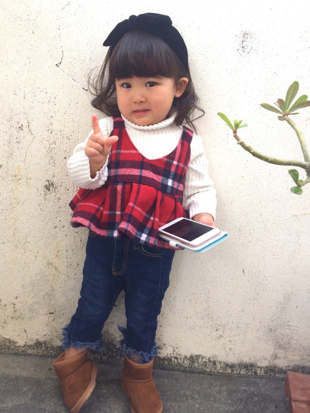 いつかの娘コーデ 薄毛ちゃんはじめてくるくる 巻いてみた(^^)♡