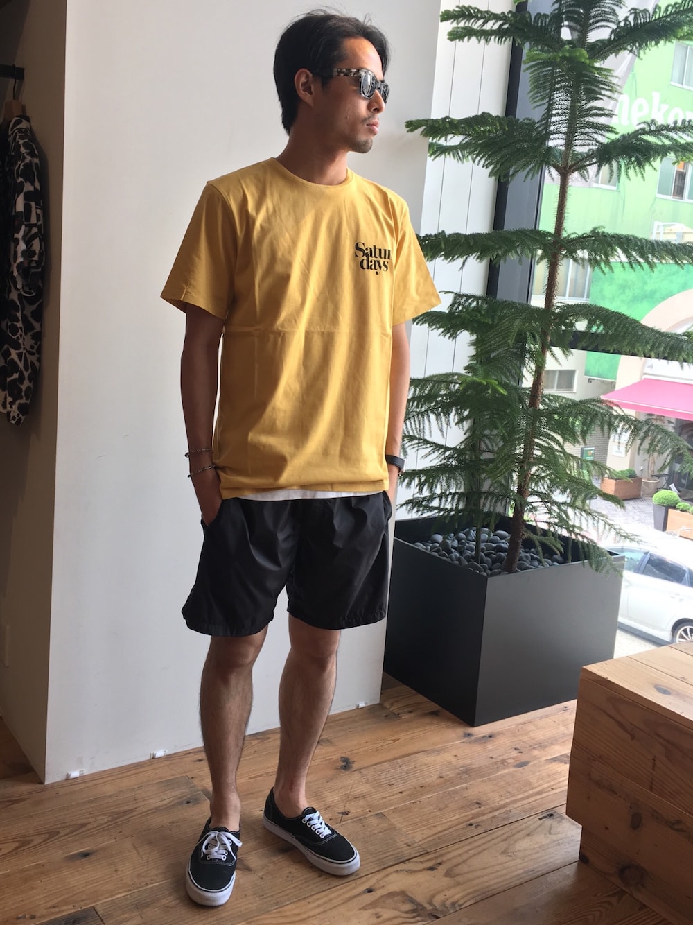 こんにちは! 今回のSaturdays名古屋はこちら! 夏らしい柔らかいプリントデザイン、黄色のカラーでサマー感UP!! 一枚で着ても良し、シャンブレーシャツなどのインナー使いでも良し、着回しが効くプリントTシャツです!!