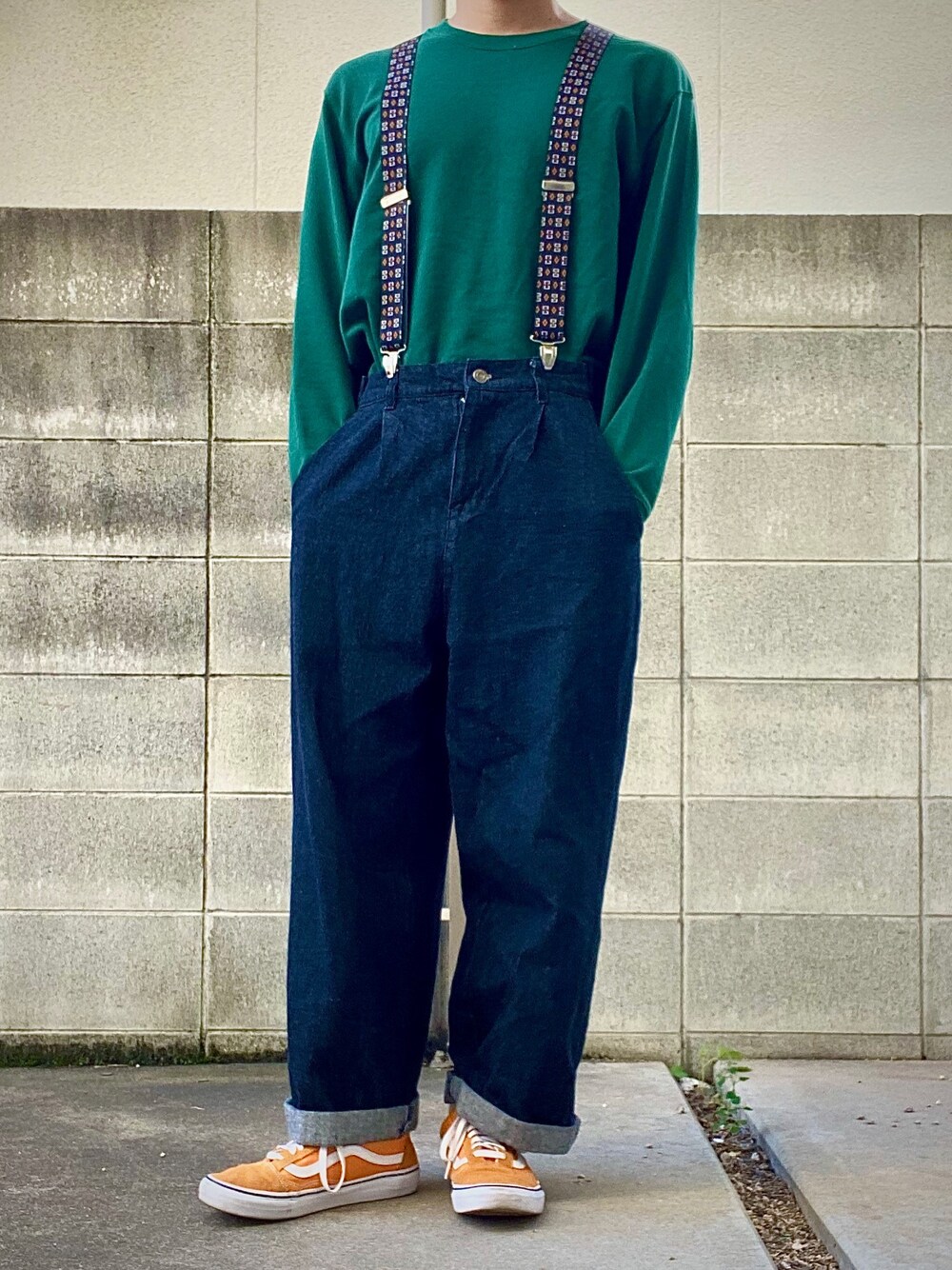 サスペンダーを使ったらコーデ! 秋っぽい感じにしてみました! よかったらイイね、フォローお願いします