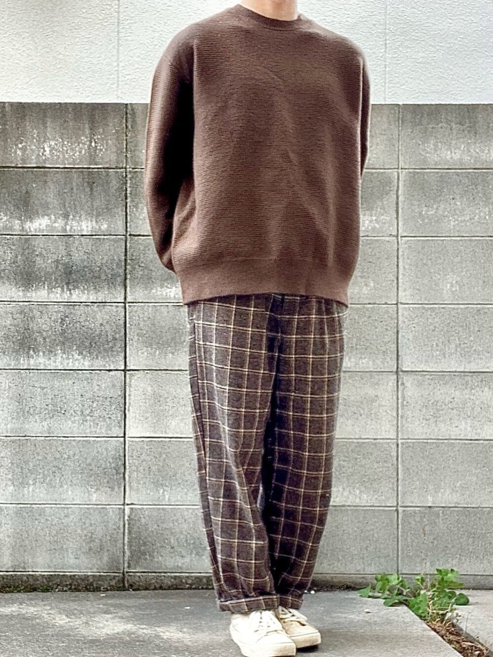 シータケのニット/セーター「ドロップショルダーガーター編ニットプルオーバー○」を使ったコーディネート